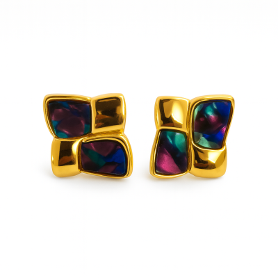 Design escultural e brilho iridescente que muda com a luz. Uma peça ousada e sofisticada que destaca o rosto com arte e cor.