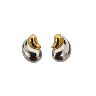Brincos com design escultural e acabamento polido, combinando tons de prata e ouro para um visual contemporâneo e elegante. Uma peça moderna que valoriza qualquer produção.
