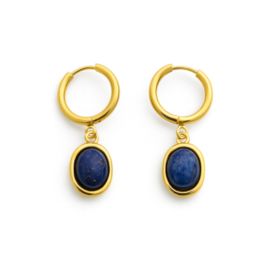 Elegantes e atemporais, os Brincos Noite Azul combinam o dourado com o tom profundo da pedra azul, criando um contraste de luxo e serenidade.