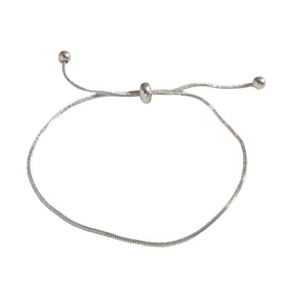 Pulseira fina em aço prateado, com fecho ajustável que garante conforto e versatilidade. Um acessório discreto e elegante, perfeito para o dia a dia ou para combinar com outras peças.